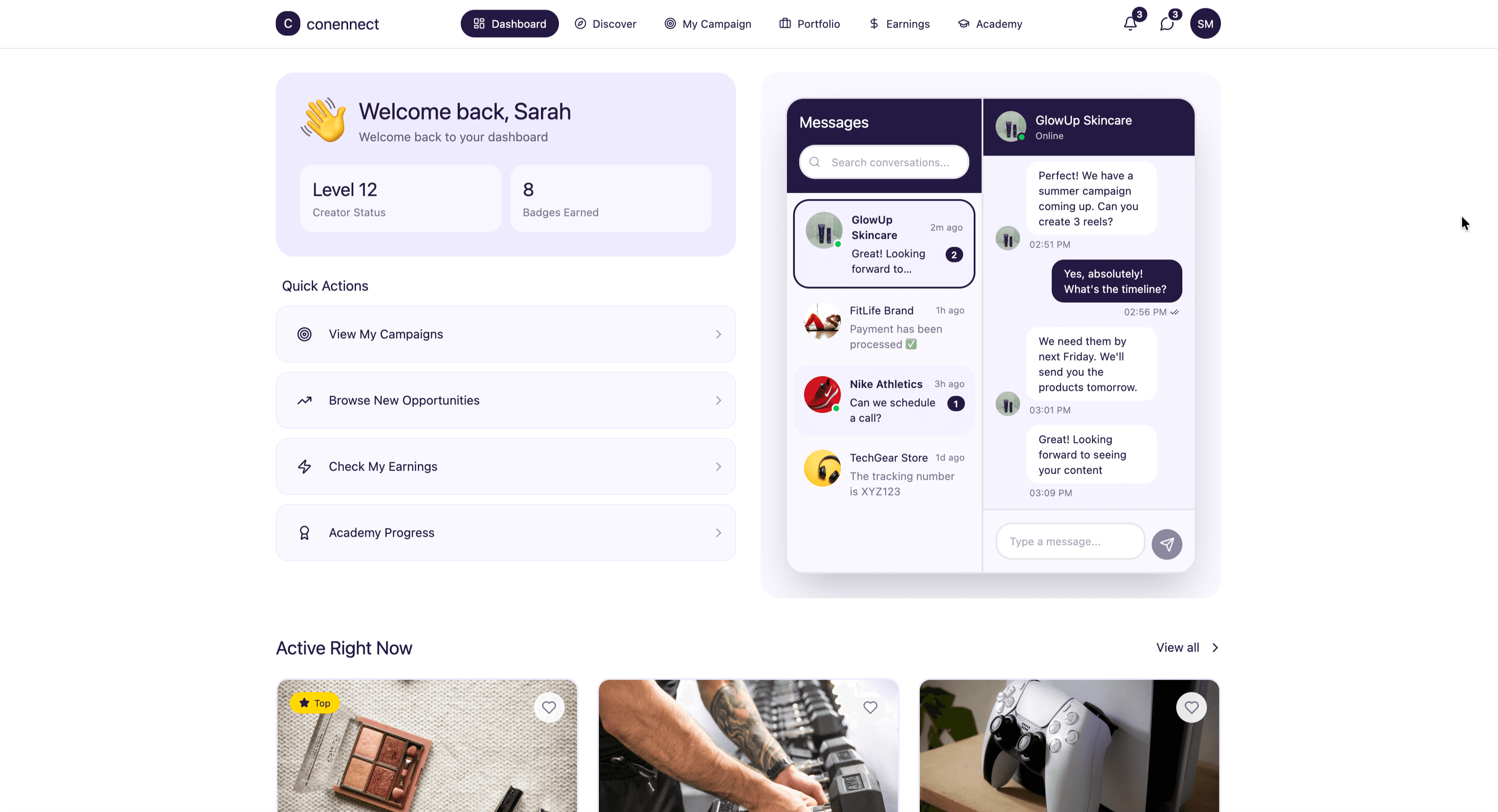 We builtDirect brand-to-creator messaging. Priority campaign access. Your voice, respected.